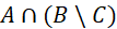 – od zbioru B odjęto zbiór C, następnie zaznaczono część wspólną tego zbioru i zbioru A
