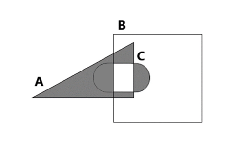 – od zbioru C odjęto zbiór A, następnie zaznaczono część wspólną tego zbioru i zbioru B
