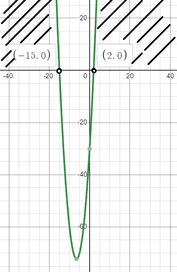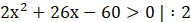 Korzystamy z twierdzenia Pitagorasa. Boki prostokąta przecinają się pod kątem prostym, wiec długość przekątnej, to pierwiastek z sumy kwadratów długości boków. Sprawdzamy jaka jest dziedzina tej funkcji, zakładając że wartość pod pierwiastkiem jest nieujemna oraz x > 0. Sprawdzamy, dla jakich argumentów wartości tej funkcji są większe niż 13. Rozwiązujemy najpierw równanie standardowymi metodami, aby poznać miejsca zerowe. Rysujemy parabolę i odczytujemy przedział znajdujący się nad osią OX. Wynik weryfikujemy z przedziałem dziedziny.