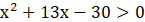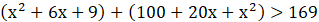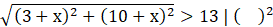 Podaj wartości x, dla których długość przekątnej prostokąta o wymiarach 3 cm × 10 cm, ale wydłużonego z każdej strony o x, jest dłuższa niż 13 cm.
