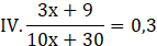 II, III, IV – mają nieskończenie wiele rozwiązań