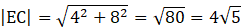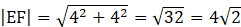 Wiemy, że Punkty E i F podzieliły boki trójkąta na dwie równe połowy, także te długości są takie same. Obliczamy długość boku EC oraz EF z twierdzenia Pitagorasa. Zauważamy że trójkąt CEF jest równoramienny. Zatem trójkąty CDE oraz FBC mają równe pola. Obliczamy je oraz pole trójkąta AFE, żeby odjąć te wartości od pola całego kwadratu i poznać powierzchnię trójkąta EFC.