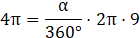 Korzystamy ze wzoru na długość łuku l okręgu o promieniu r wyznaczonego przez kąt środkowy o mierze