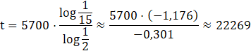 Odpowiedź: Przybliżony wiek znaleziska wynosi 22269 lat.