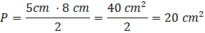 W tym zadaniu musisz obliczyć pole trójkąta, którego przyprostokątne mają długości 5 cm i 8 cm.
