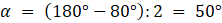 Dany jest trójkąt o kącie ABC równym 40°. Został wpisany w okrąg, ze środkiem S. Kąt α wynosi:
