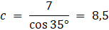 Kąt między średnicą a cięciwą okręgu wynosi 35° a cięciwa ma długość 7. Znajdź, do jakiego przedziału należy długość średnicy: