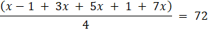 Średnia arytmetyczna zestawu x-1, 3x, 5x + 1, 7x wynosi 72, więc: