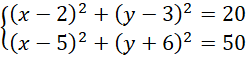 Zacznij od wyznaczenia równania okręgów w postaci kanonicznej: