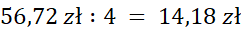Masz podaną cenę za 4 zestawy jedzenia. Żeby policzyć, ile musi zapłacić jedna osoba, musisz podzielić całą kwotę na 4.