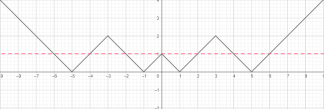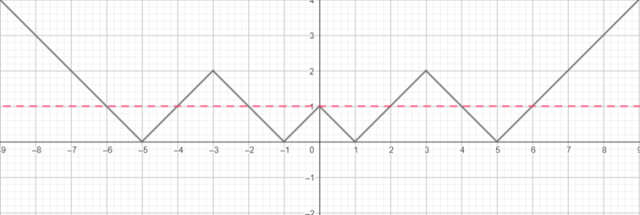 Narysuj prostą przechodzącą przez wykres największą ilość razy i oblicz ilość punktów przecięcia prostej i wykresu.