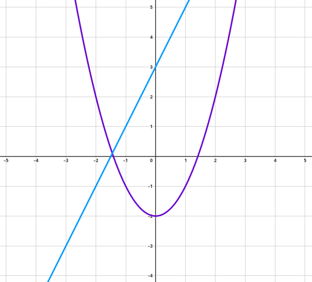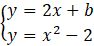 Ułóż układ równań ze sparametryzowanego równania prostej oraz równania paraboli. Przyrównaj prawe strony tych równań. Wyznacz wyróżnik sparametryzowanego wielomianu. Prosta oraz wykres paraboli mają mieć tylko jeden punkt wspólny, więc wyróżnik wielomianu opisującego relację między konstrukcjami musi być równy zero. Wyznacz wartości parametru 𝑏, dla których wyróżnik jest równy zero.