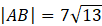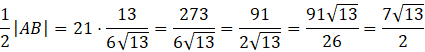 Dana jest prosta: -3x + 2y – 1 = 0, na której leżą punkty A i B. Razem z punktem C = (-3, -1) tworzą one trójkąt o polu 21. Wyznacz |AB|.