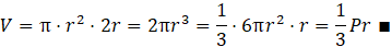 Udowodnij, że objętość walca o polu powierzchni 𝑃 opisanego na kuli o promieniu 𝑟 jest równa