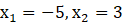 Wiedząc, że funkcja kwadratowa ma dwa miejsca zerowe: -5 i 3. Wyznacz równanie osi symetrii paraboli.