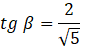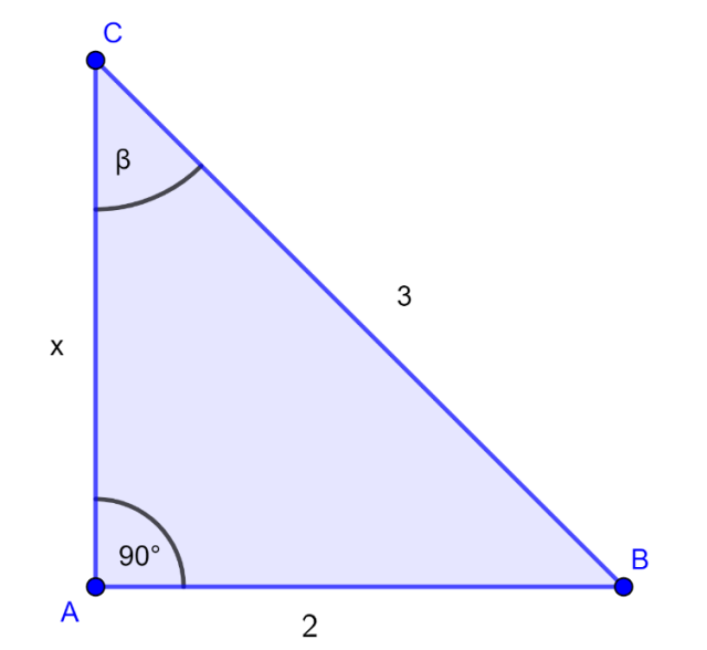 W trójkącie prostokątnym, gdzie stosunek długości najdłuższego boku do najkrótszego boku wynosi 3:2, a najmniejszy kąt ma miarę β to wskaż wartość tangensa.