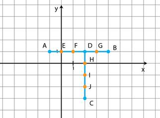 Na rysunku w układzie współrzędnych narysowano odcinki AB i CD. W tym zadaniu musisz podać współrzędne czterech dowolnych punktów, które znajdują się na tych odcinkach.