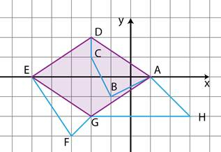 W tym zadaniu musisz odnaleźć 4 wierzchołki ośmiokąta ABCDEFGH, które są też wierzchołkami pewnego rombu. Oblicz także pole tego rombu.