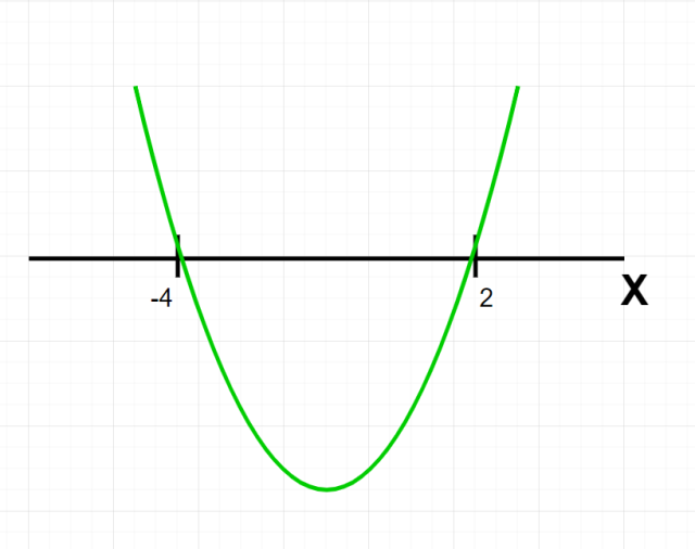 Zaznacz na osi OX rozwiązania równania. Naszkicuj parabolę skierowaną ramionami do góry, przechodzącą przez te punkty. Nie musisz wyznaczać wierzchołka paraboli.