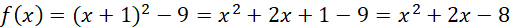 W tym zadaniu musisz znaleźć wzór funkcji f(x) = x² + bx + c wiedząc, że wierzchołkiem paraboli wyrażającej jej równanie jest punkt W(-1, -9), a następnie rozwiązać nierówność x² + bx + c