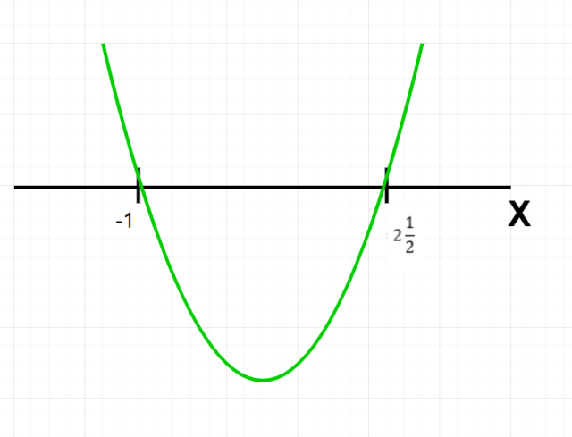 Zaznacz na osi OX rozwiązania równania. Naszkicuj parabolę skierowaną ramionami do góry, przechodzącą przez te punkty. Nie musisz wyznaczać wierzchołka paraboli.