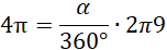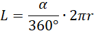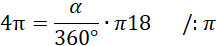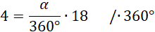 Skorzystaj ze wzoru na długość łuku okręgu i podstaw do niego wartości: obliczoną długość promienia oraz długość łuku. Następnie rozwiąż równanie z jedną niewiadomą.