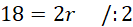 Oblicz długość promienia, korzystając ze wzoru na długość średnicy.