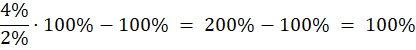 Oblicz, o ile procent 4% jest większe od 2%. Podziel 4% przez 2%, zamień wynik na procenty i odejmij 100%.
