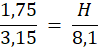 Wyznacz wysokość latarni, wiedząc, że jej cień rzucany na podłoże wynosi 8,1 m, a cień chłopca o wzroście 1,75 m wynosi 3,15 m.
