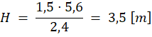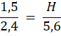 Wyznacz wysokość słupa, jeśli wiadomo, że gdy kot wdrapał się na wysokość 1,5 m, to jego cień znajdował się w odległości 2,4 m od podstawy tego słupa, którego cień miał wówczas 5,6 m długości.
