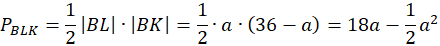 Wykonaj rysunek pomocniczy. Oblicz pole prostokąta. Kolejno oblicz pola trójkątów AKN i CML oraz DNM i BLK i zauważ, że są to parami identyczne pola. Kolejno oblicz pole prostokąta KLMN. Kolejno odszukaj pierwszą współrzędną wierzchołka paraboli wykresu funkcji