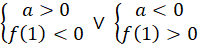 Zauważ, że funkcja liniowa ma rozwiązanie równe 1, gdy jest rosnąca i wartość dla 1 jest mniejsza od 0, lub gdy jest malejąca i wartość dla 1 jest większa od 0. Rozwiąż układ równań, rozważając te dwa przypadki i znajdź część wspólną.