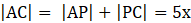 Z treści zadania wiemy, że |AP| : |PC| = 2 : 3, więc można zapisać, że |AP| = 2x i |PC| = 3x.