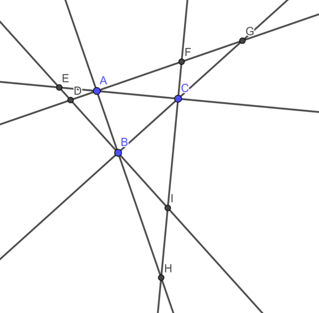 Odcinki prostopadłe: DI i BC, FI i AC, DF i AB