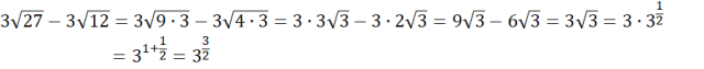 Liczby pod pierwiastkami zamień na takie iloczyny, w których przynajmniej jeden czynnik jest kwadratem liczby całkowitej. Oblicz wartość każdego z nich i zapisz go przed pozostawionym pierwiastkiem. Następnie skorzystaj z tego, że pierwiastek można zapisać za pomocą potęgi: