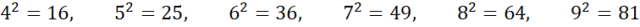 Wypisz wszystkie liczby naturalne, których kwadrat jest liczbą dwucyfrową. Uzyskane wyniki zapisz jako elementy zbioru A i ustal, ile z nich jest liczbami parzystymi.