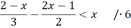 Całą nierówność pomnóż przez 6, wymnóż powstałe nawiasy i dokonaj redukcji wyrazów podobnych. Następnie przenieś wszystkie wartości z