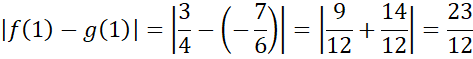 podstaw 1 i oblicz wartość każdej z nich. Następnie oblicz odległość pomiędzy tymi punktami, czyli różnicę uzyskanych wartości. Pamiętaj, aby zapisać to działanie w wartości bezwzględnej, ponieważ odległość nie może być liczbą ujemną.
