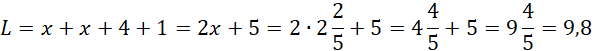 Zacznij od obliczenia skali podobieństwa mniejszego czworokąta do większego. Następnie wyznacz długość x i kolejno obwód większego czworokąta.