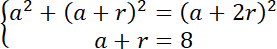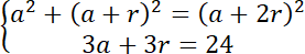 Podaj długości boków trójkąta prostokątnego o obwodzie równym 24. Wiadomo, że długości wspomnianych boków tworzą ciąg arytmetyczny.