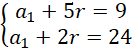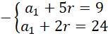 Oblicz różnicę ciągu i jego pierwszy wyraz z układu równań: