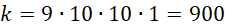 Pierwszą liczbę wybieram na 9 sposobów (0 nie może stać na początku), ostatnia jest taka sama. Dwie środkowe liczby wybieram na 10 sposobów każdą.