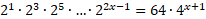 Zauważ, że lewa strona równania to iloczyn wyrazów, których wykładniki tworzą x-wyrazowy ciąg arytmetyczny. Oblicz wartość równania wykładniczego.