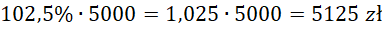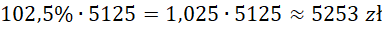 Następnie kwotę wpłaconą przez pana Nowaka pomnóż przez 102,5% (bo oprocentowanie lokaty wynosiło 2,5%), a następnie uzyskaną liczbę ponownie pomnóż przez 102,5%, ponieważ jego lokata była półroczna.