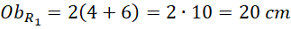 Skorzystaj z tego, że znasz skalę podobieństwa figur R1 i R2. Więc ich obwody będą podobne w takiej samej skali. Pod powstałe równanie podstaw znane wartości i wyznacz z niego obwód równoległoboku R2.