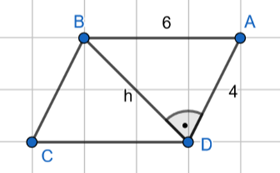 Skorzystaj z twierdzenia Pitagorasa w trójkącie ABD i na tej podstawie oblicz długość wysokość tego równoległoboku opadającej na krótszą podstawę.