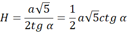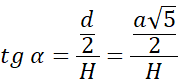 Następnie zauważ, że połowa przekątnej podstawy, wysokość ostrosłupa i krawędź boczna tworzą trójkąt prostokątny. Skorzystaj z funkcji tangens w tym trójkącie i wyznacz długość wysokości ostrosłupa.