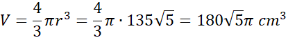 Wyznacz objętość kuli, której pole powierzchni jest równe sumie pól powierzchni dwóch kul o promieniach 3 cm i 6 cm.