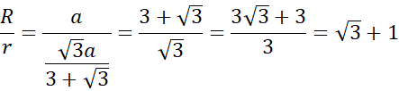 w trójkąt i na tej podstawie wyznacz długości promieni i ich stosunek.