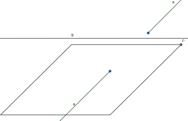 Zbuduj model lub wykonaj rysunek płaszczyzny równoległej do prostej i do prostej oraz przechodzącej przez punkt P, jeśli dane są dwie proste skośne i oraz punkt P nienależący do żadnej z nich.
